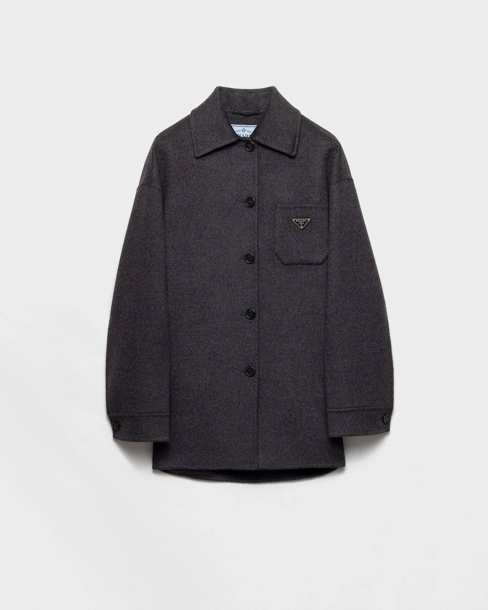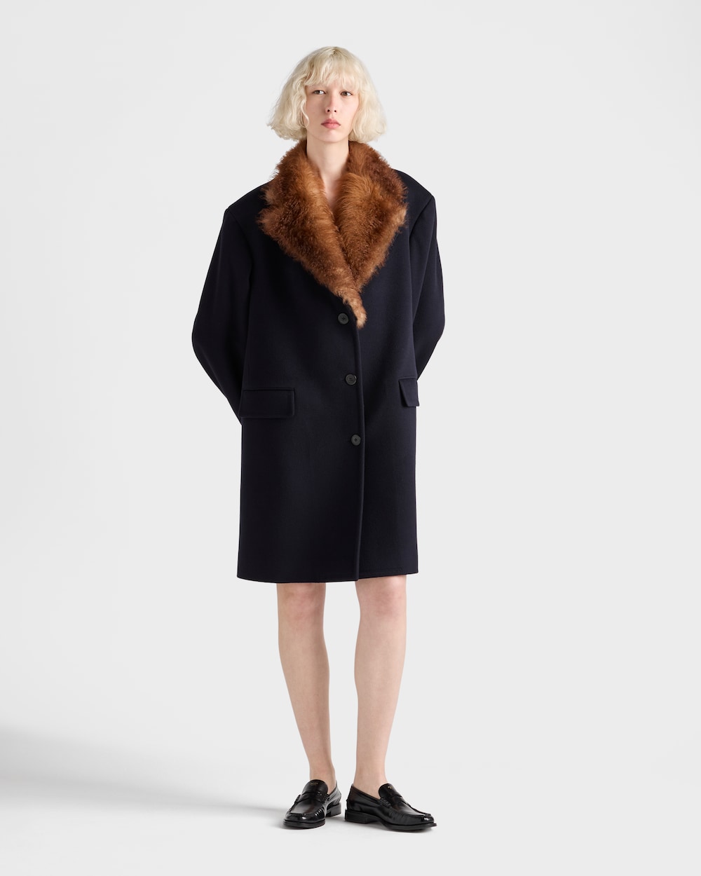 Embroidered Double-Breasted Wool Coat with Rush Stitching