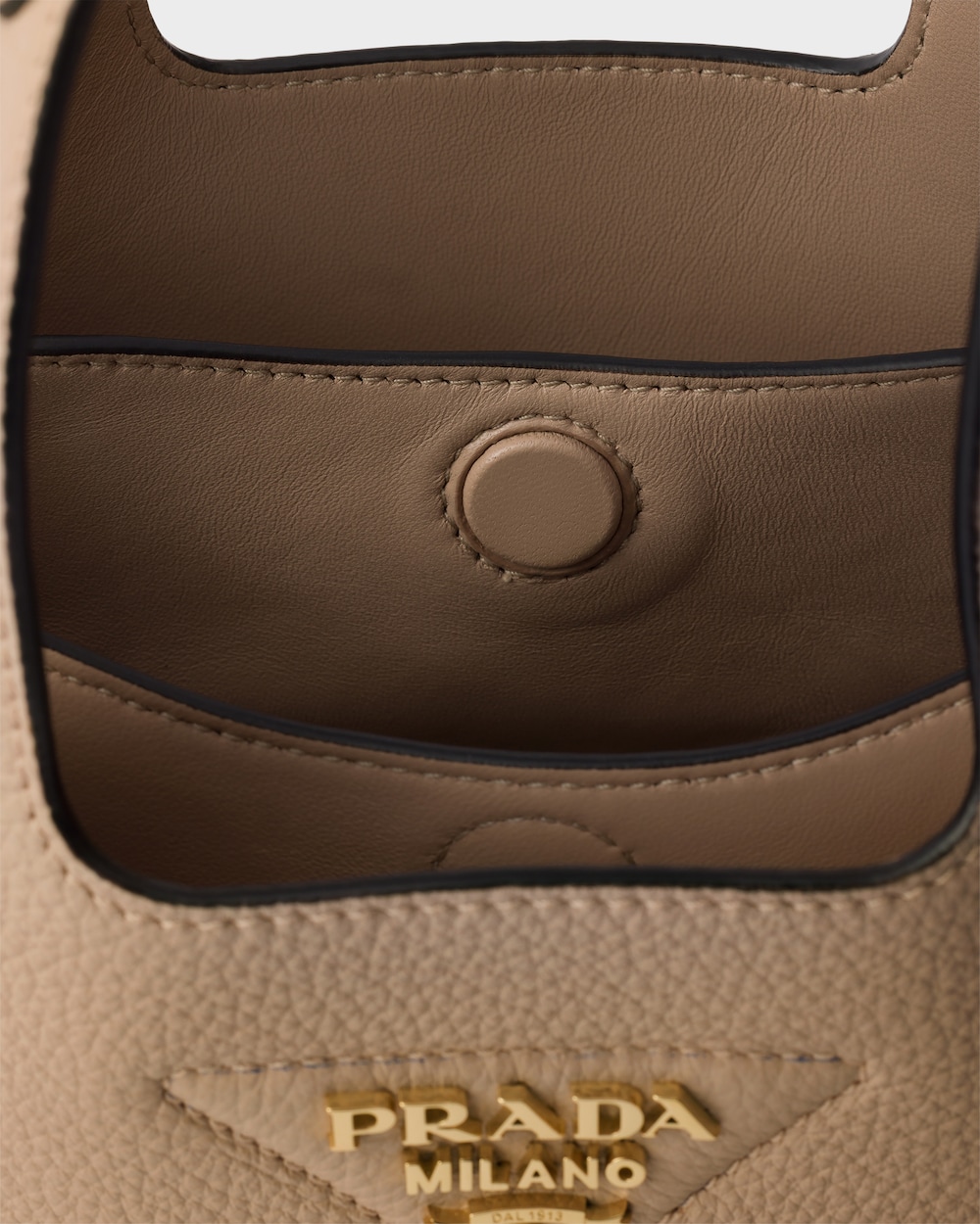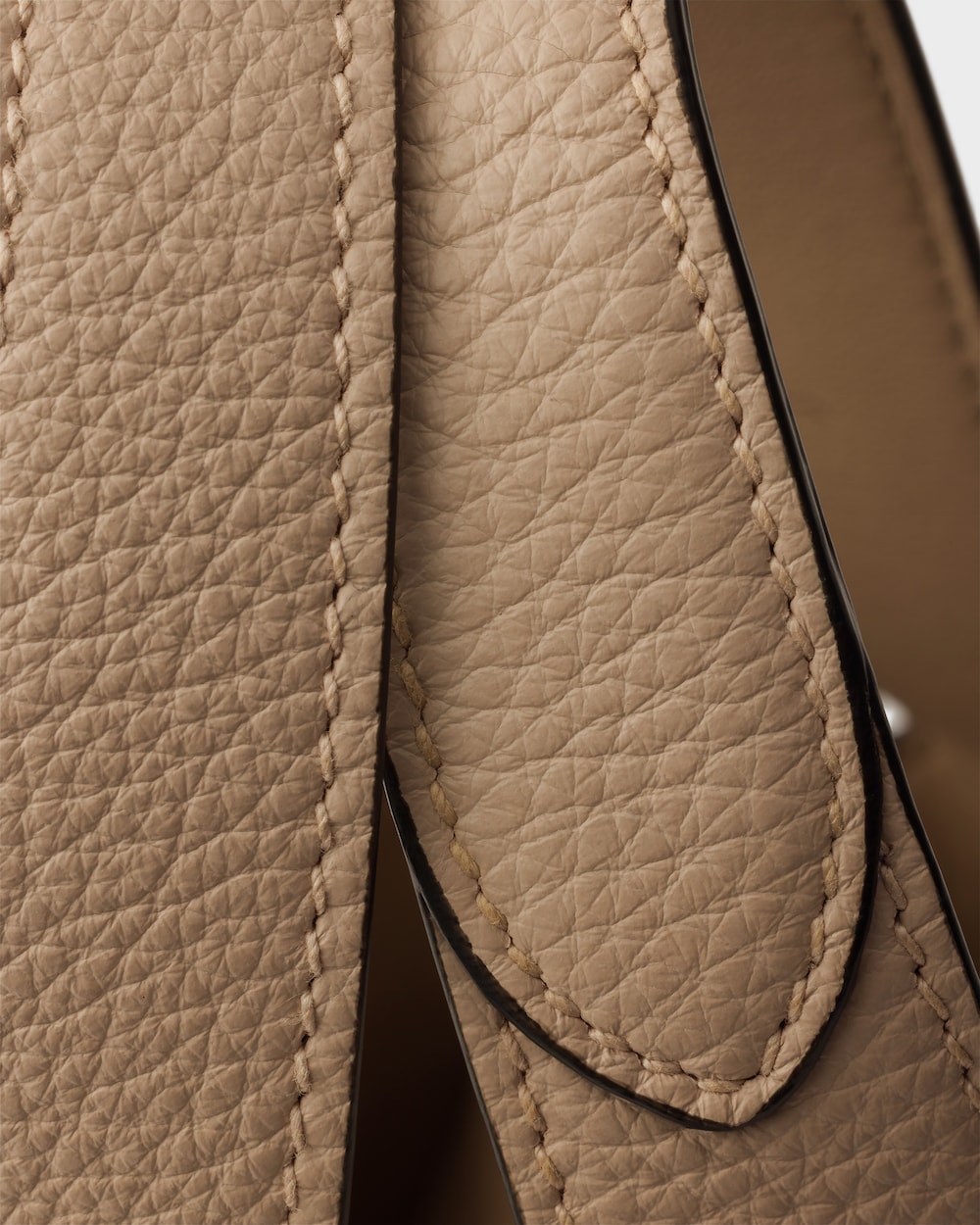 柔らかなアンコンシルエットを描く、レザーのミニバッグ。リバースステッチで柔らかく丸みのあるフォルムに仕上げました。フロントにあしらわれたメタルのレタリングロゴが、モダンで洗練された軽量のアイテムを引き立てています。