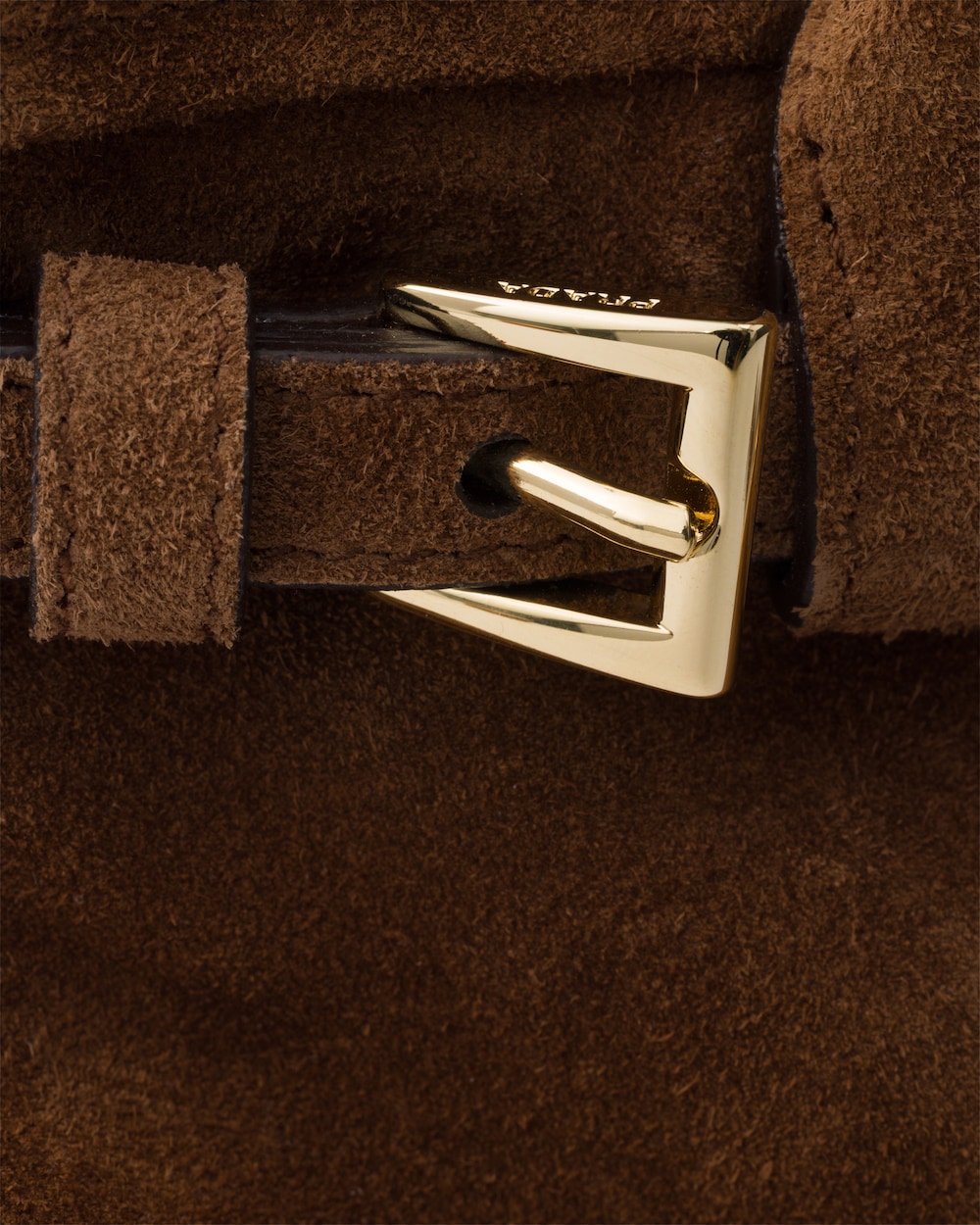 革新性、型破りな精神、そしてタイムレスな美学を象徴するボニーバッグは、プラダの現代性との対話を表現しています。アクセサリーはソフトスエードのミニバージョンで登場。サイドに特徴的なメタルバックルとレースがあしらわれた、汎用性がありコンパクトなデザインです。