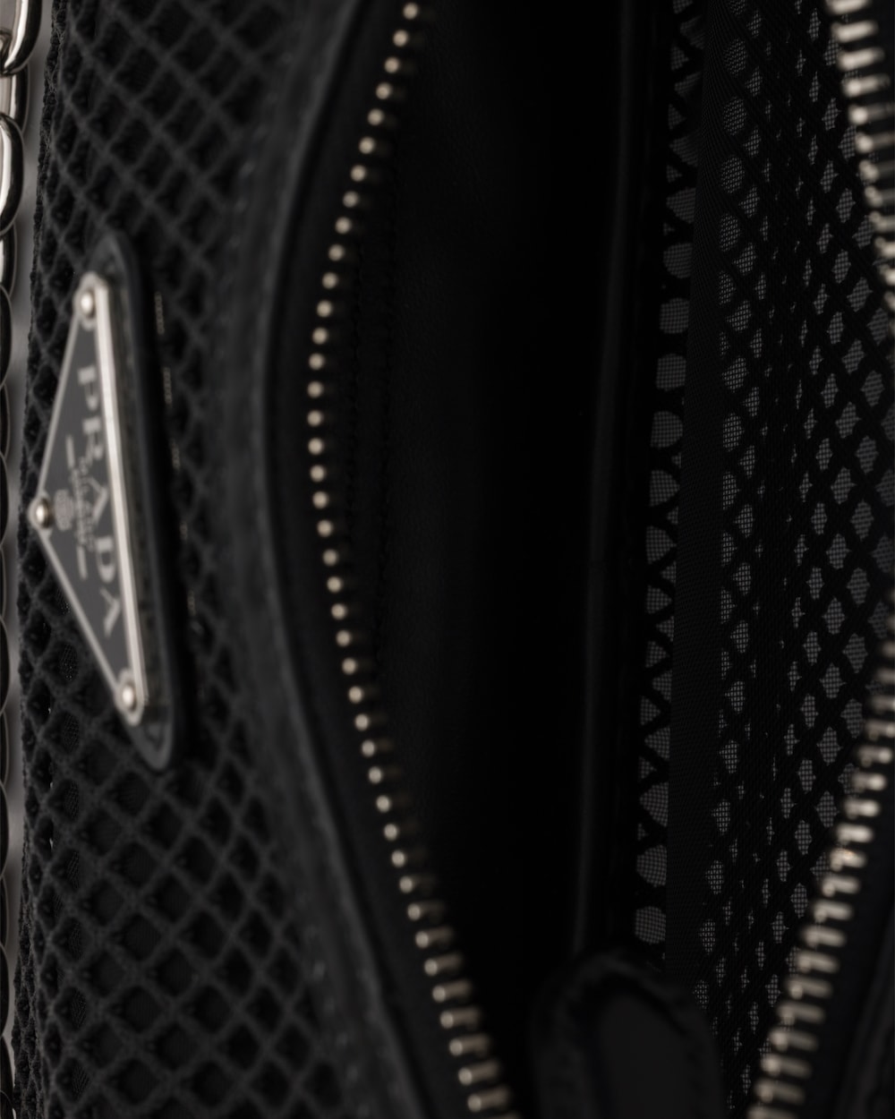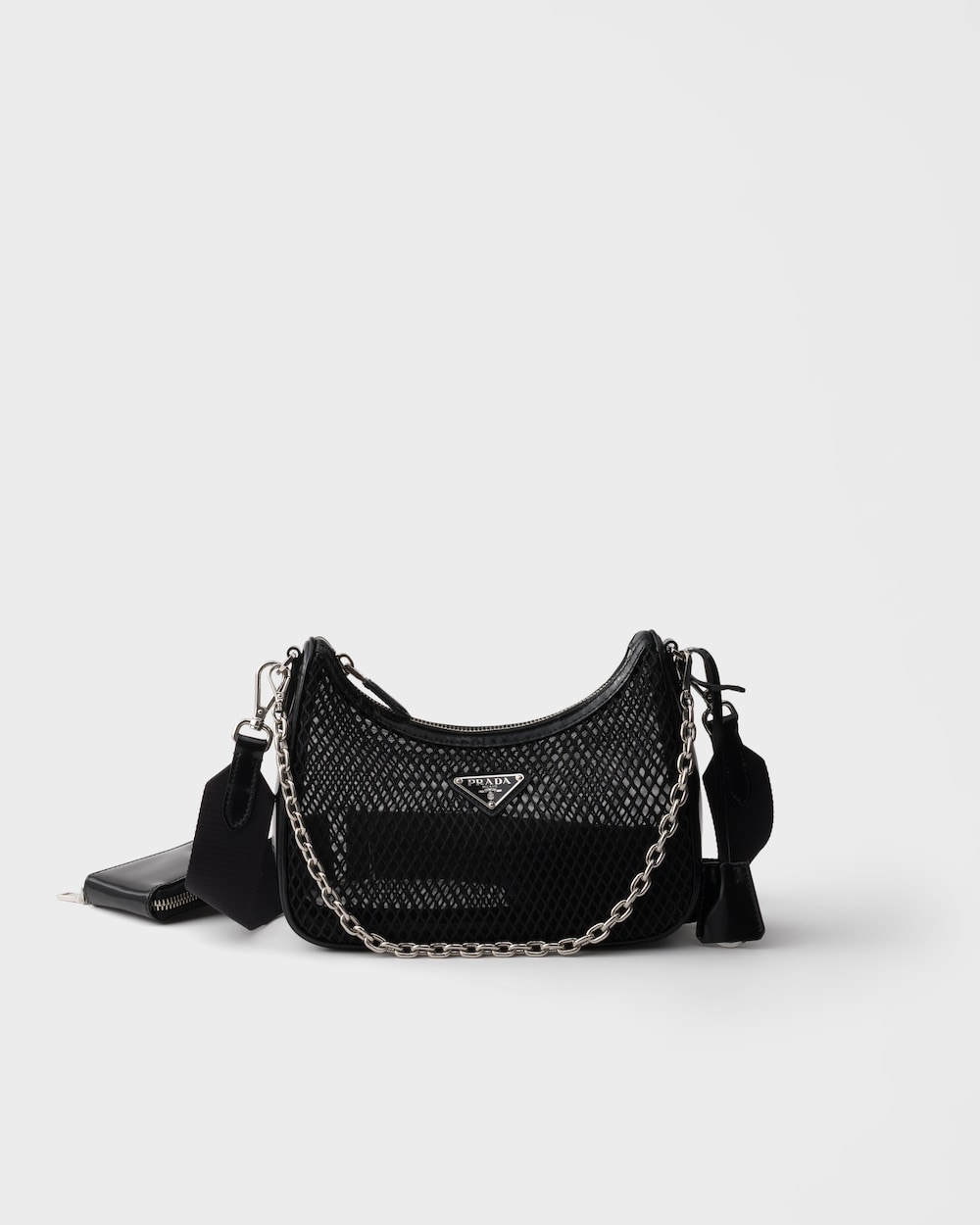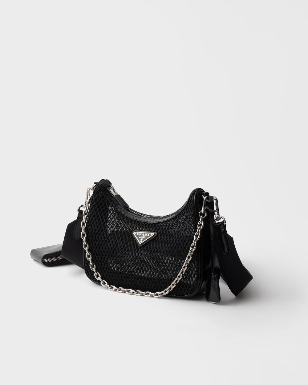 新しい軽やかさが、プラダ Re-Edition 2005 バッグのアイコニックなシルエットを変革します。ユニークなスタイルはメッシュファブリックとブラッシュドレザー(牛革)を使用しています。素材の組み合わせがバッグの二重の本質を映し出し、スポーティなショルダーストラップと、シーンに応じて交互に使えるエレガントなチェーンハンドルによって際立ちます。