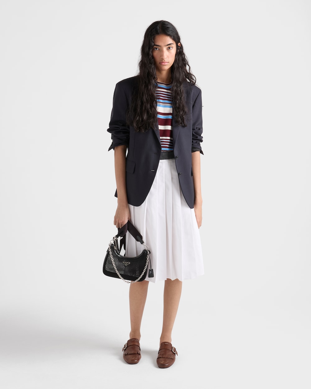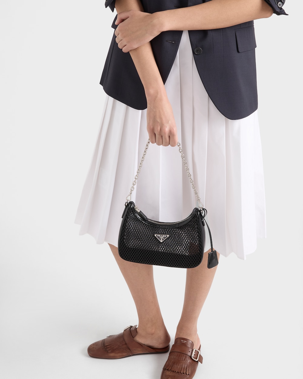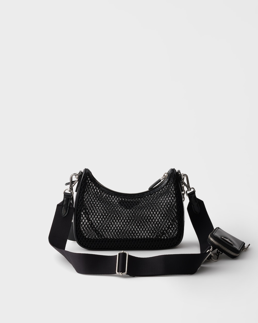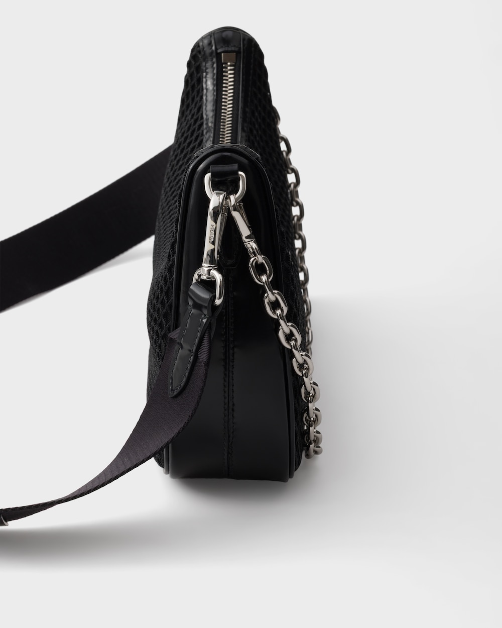 新しい軽やかさが、プラダ Re-Edition 2005 バッグのアイコニックなシルエットを変革します。ユニークなスタイルはメッシュファブリックとブラッシュドレザー(牛革)を使用しています。素材の組み合わせがバッグの二重の本質を映し出し、スポーティなショルダーストラップと、シーンに応じて交互に使えるエレガントなチェーンハンドルによって際立ちます。