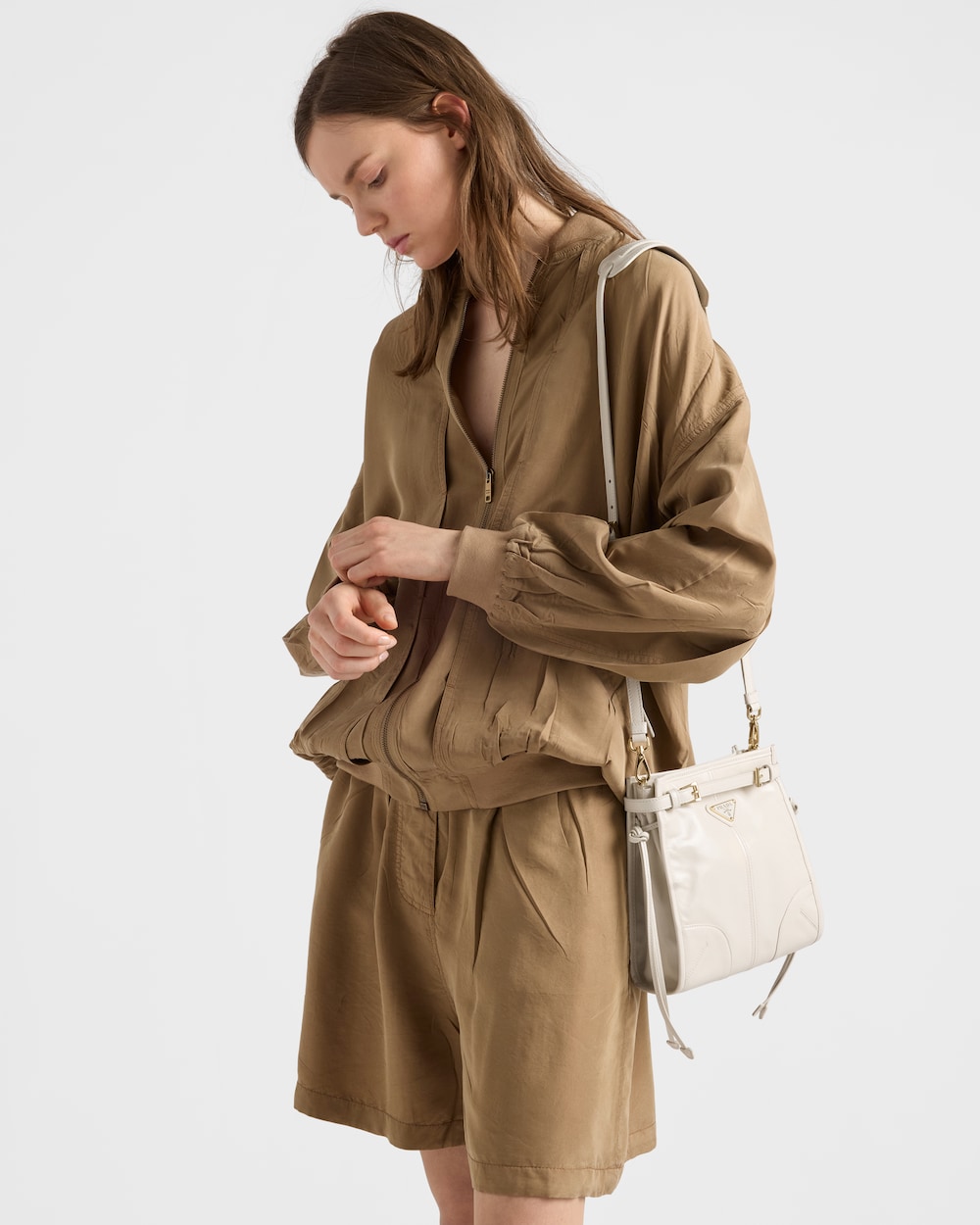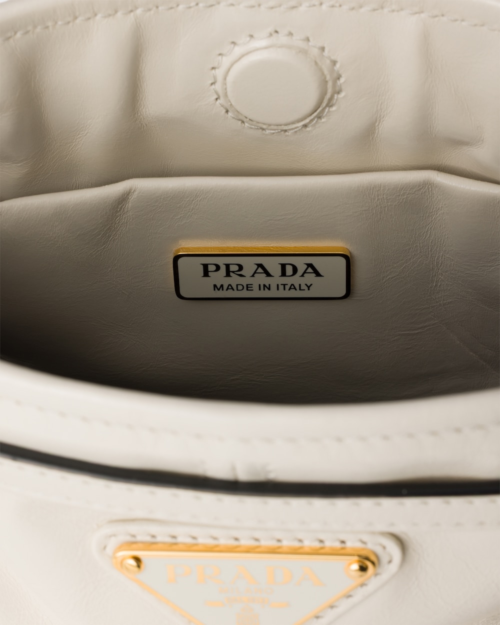 アイコンの進化: ボニー バッグは、ショルダーストラップ付のシルエットで、スタイルの多様性を際立たせます。新しい洗練されたコンパクトなフォルムは、丁寧に仕上げられた柔らかいレザーによって、独特で光沢のある輝きを放ちます。エナメルメタルのトライアングルロゴで飾られたアクセサリーを縁取る、特徴的なベルトディテール。