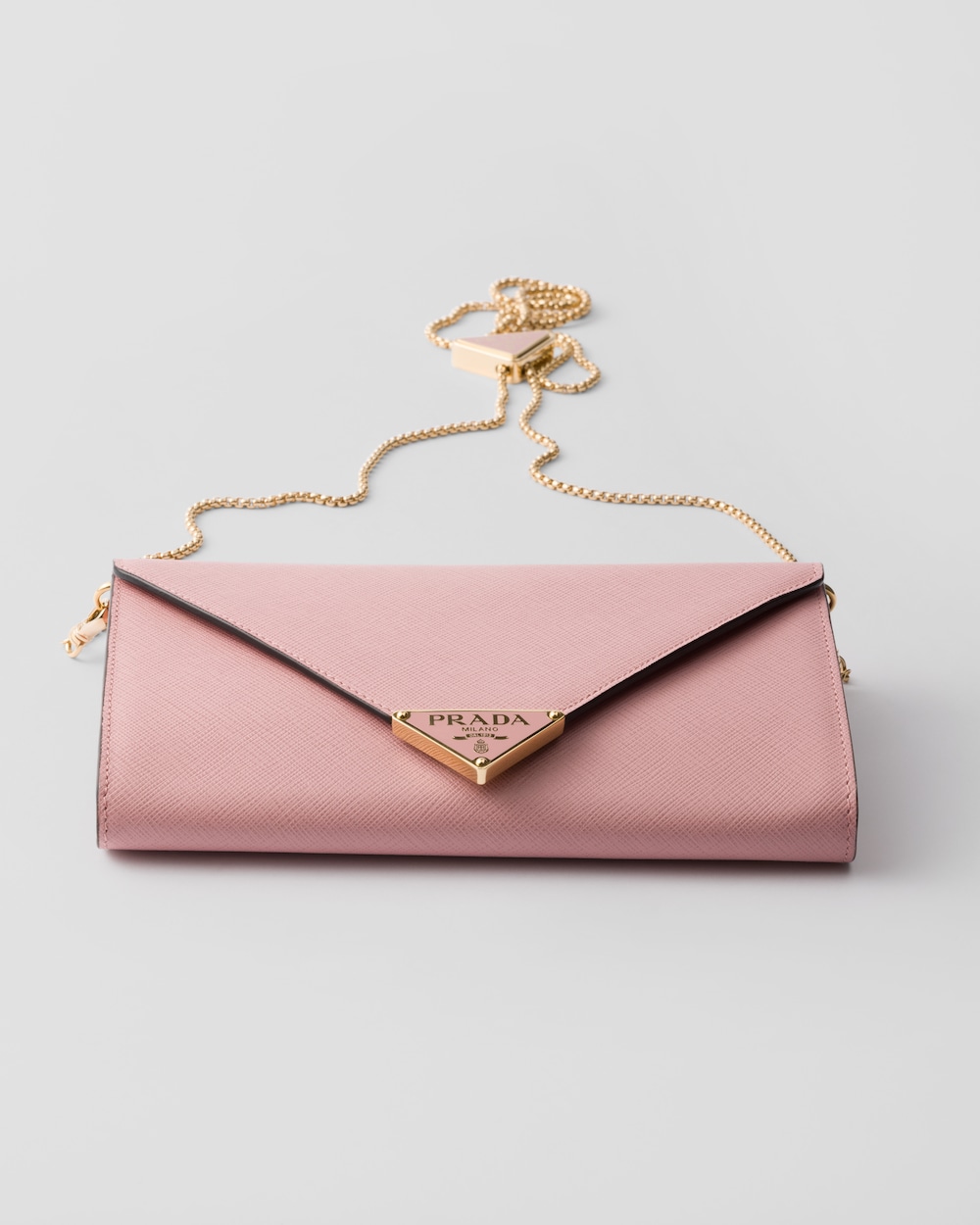 プラダを代表する素材「サフィアーノ」レザー(牛革)の特徴であるクロスハッチ加工の質感が際立つミニバッグ。上品なシルエットとプラダのコードを融合した洗練されたデザイン。フロントの開閉部とエレガントなショルダーストラップにアイコニックなトライアングルをあしらいました。