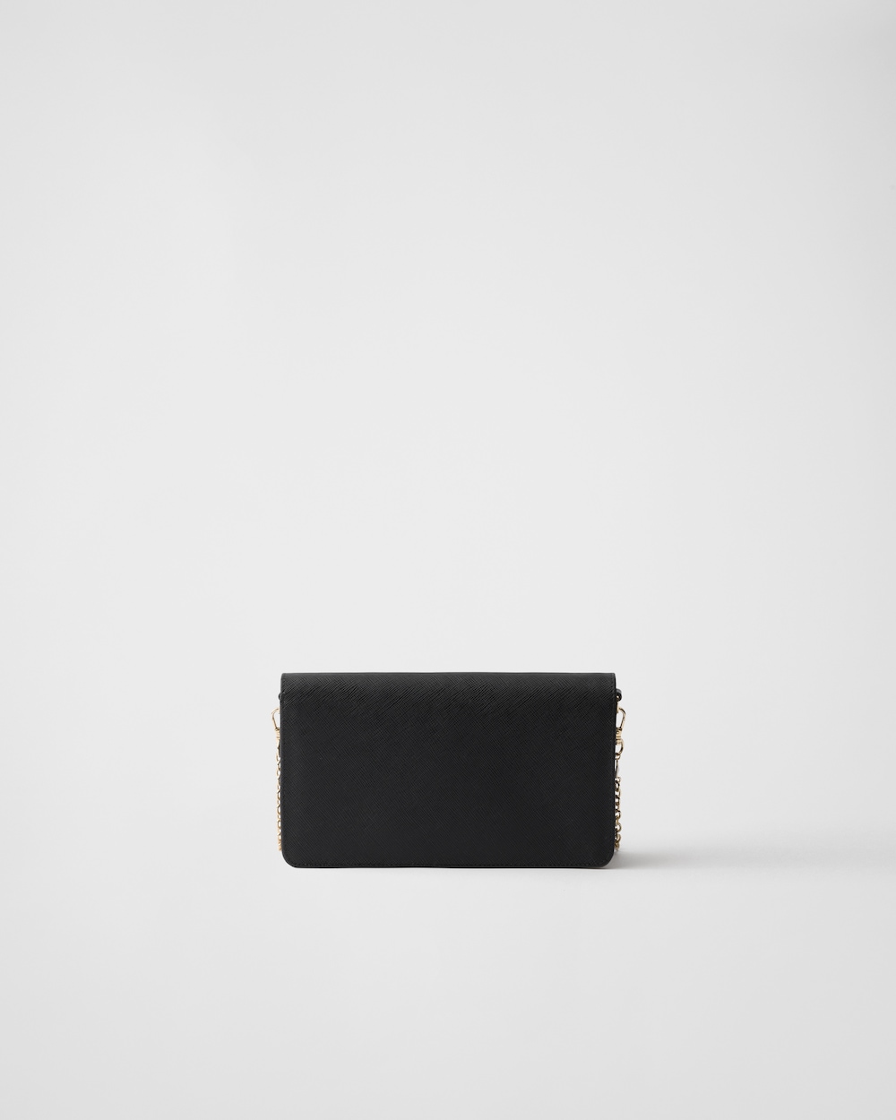 洗練されたミニマルなデザインの「サフィアーノ」レザー(牛革)のミニバッグ。ショルダーストラップ付。メタルロゴがあしらわれています。