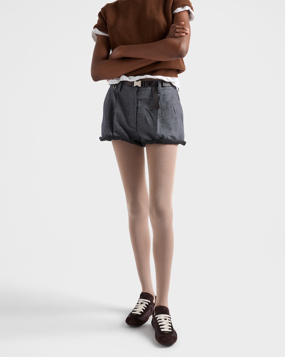 The "Monte Carlo Sneakers," introduced in the 2005 "Linea Rossa Collection," combine innovation with sophisticated design, achieving a balance of style and comfort. In this new interpretation, the footwear reappears featuring a soft and supple upper made of suede and Re-Nylon. It adopts a silhouette inspired by driving shoes, incorporating a deconstructed sole that adds a light impression and refined beauty.