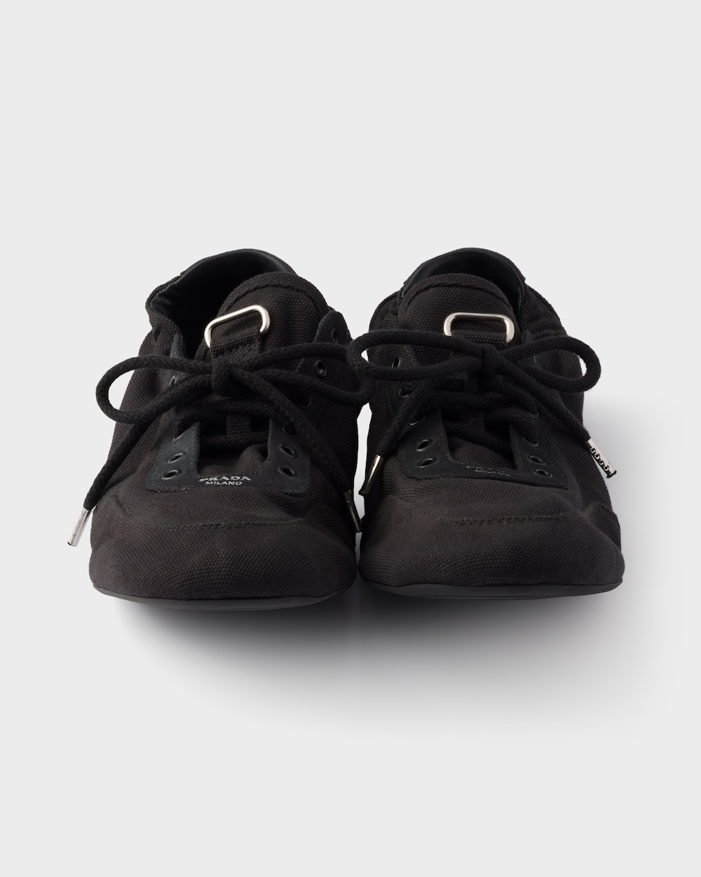 コラプススニーカーは、軽やかで柔軟、そしてデコンストラクテッドデザインで、プラダのスポーティかつ職人技の魂を体現します。キャンバス素材で再解釈されたシューズは、ヴィンテージ仕上げがカジュアルなキャラクターとリラックスした雰囲気を強調します。