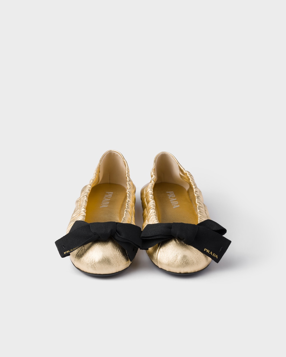 〈バレリーナフラット〉は、繊細さと大胆さを併せ持ち、女性らしい優美なシルエットに、モルドレナッパレザーならではの独特な光沢感を融合させた一足です。ラウンドトゥのテーパードスタイルに、上質なファブリックで仕立てたボウがあしらわれ、洗練された印象を引き立てます。