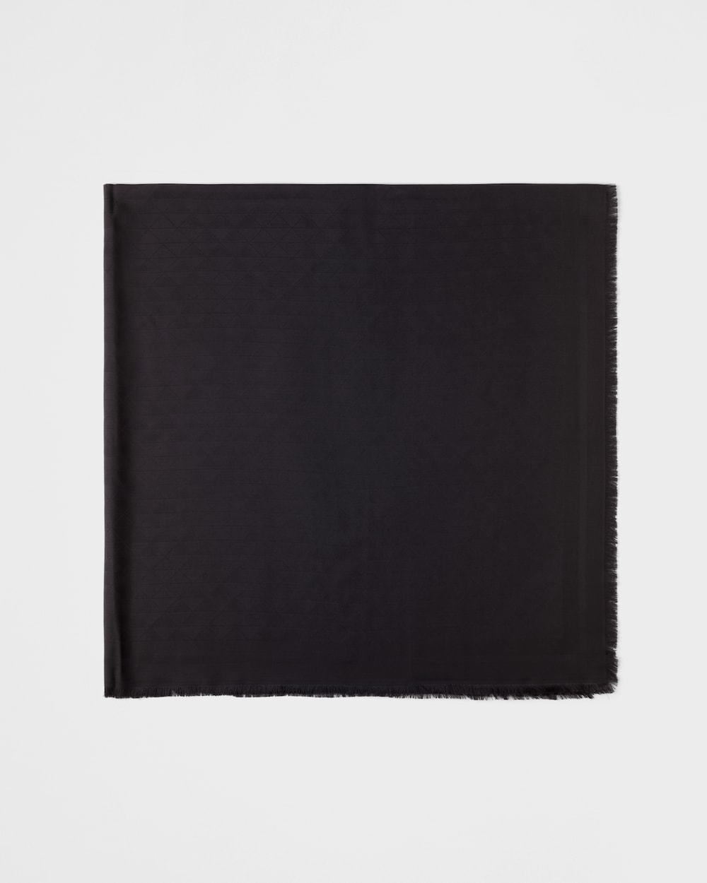 An elegant and versatile jacquard knit shawl made of silk and wool. A special technique that highlights the geometric motifs of the Prada symbol creates a refined three-dimensional effect in the design. This sophisticated scarf features a lettering logo surrounded by an iconic triangle, allowing for various styles, whether wrapped around the neck or draped over the shoulders.