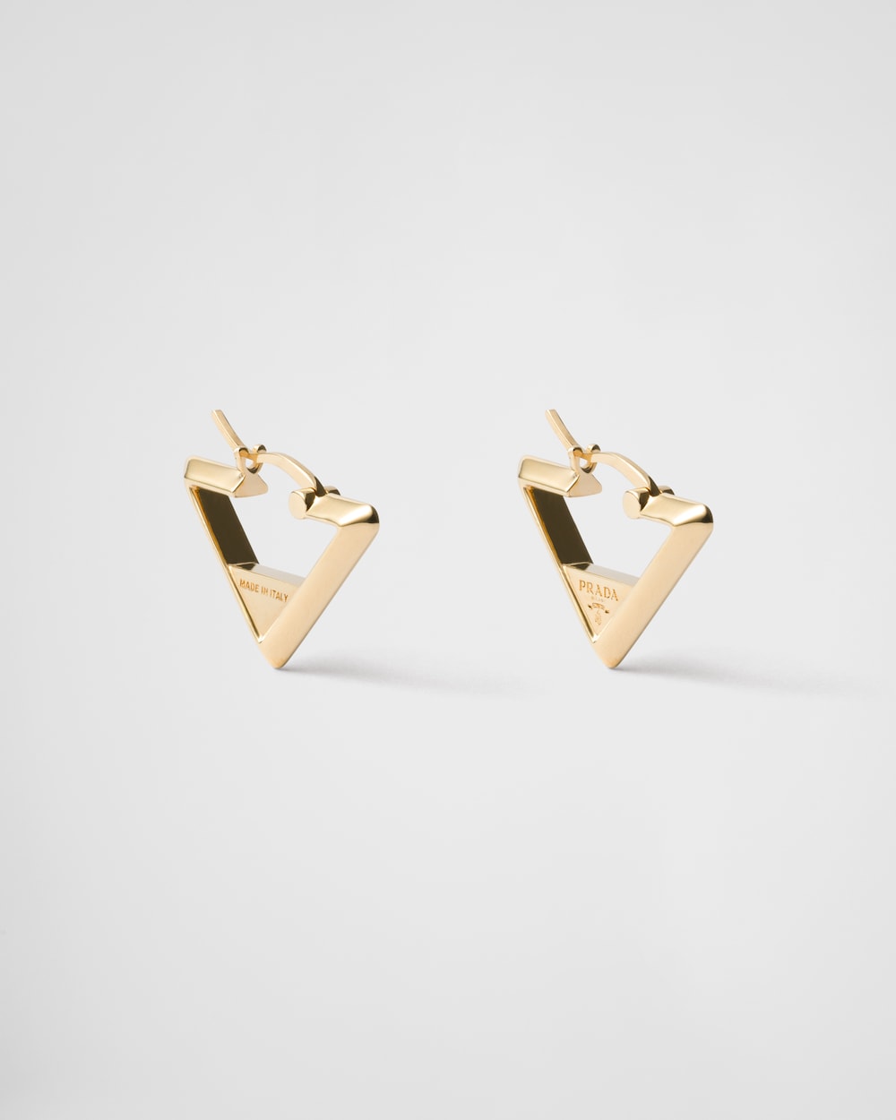 Elegant metal earrings featuring iconic details. The refined modern geometric shape symbolizes Prada's triangle logo, standing out beautifully.