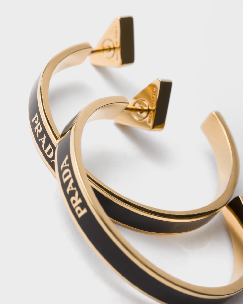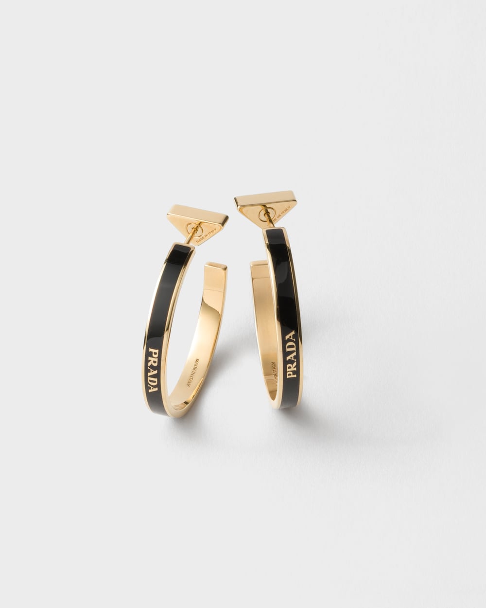 Metal hoop earrings with a lettering logo, featuring a sophisticated modern design.
