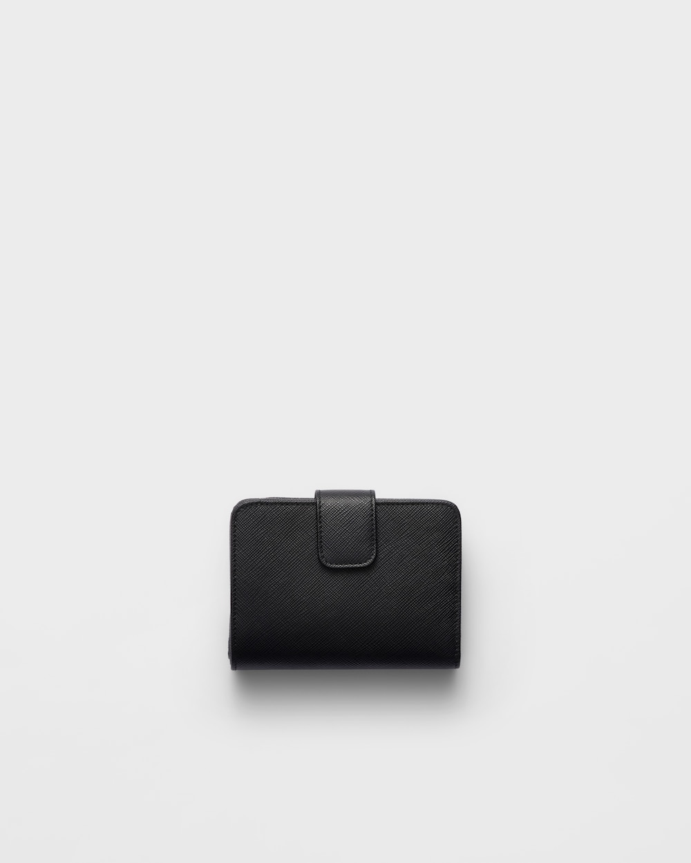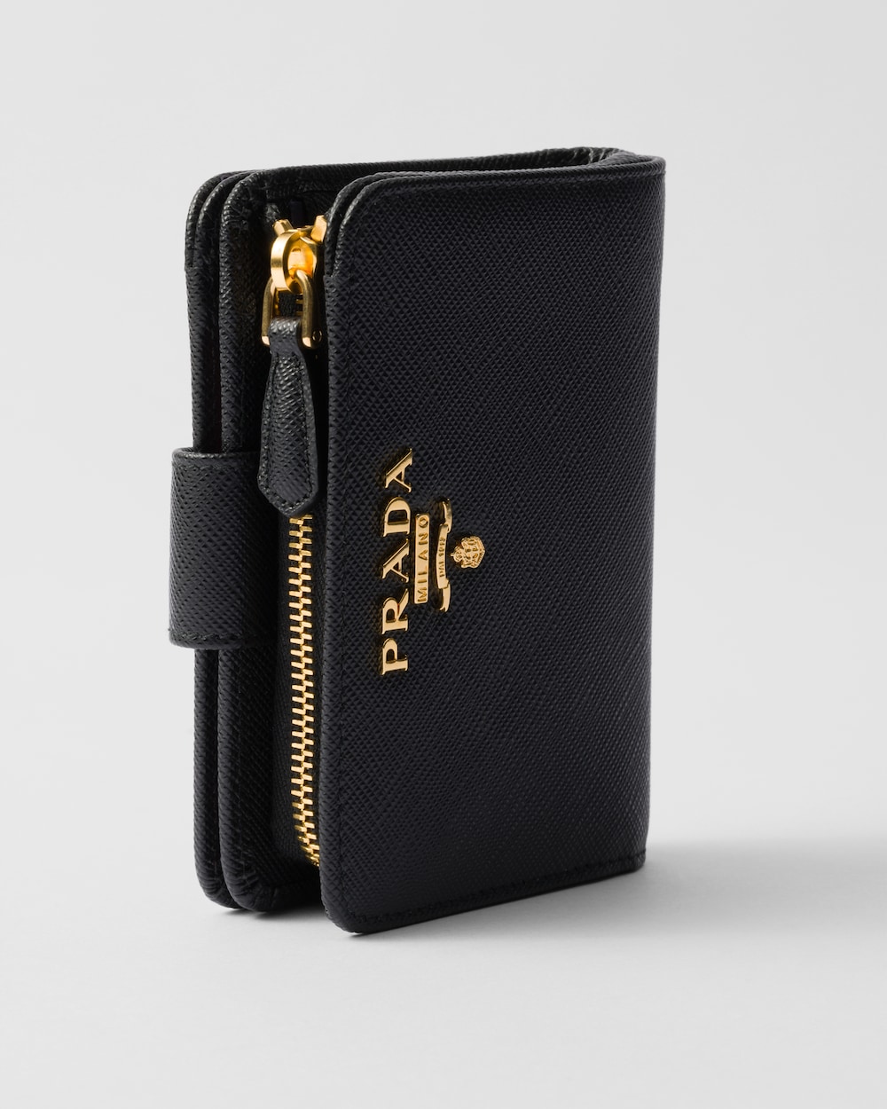 コントラストカラーのレザーライニングと「サフィアーノ」レザーにあしらわれたプラダのレタリングロゴが特徴の折り財布。高品質のカーフレザーにクロスハッチ加工とワックス仕上げを施した「サフィアーノ」レザーの質感をお楽しみいただけるアイテム。ファスナー開閉式の小銭入れとスナップ開閉式のコンパートメントに複数の収納部分、カードホルダーが備わっています。