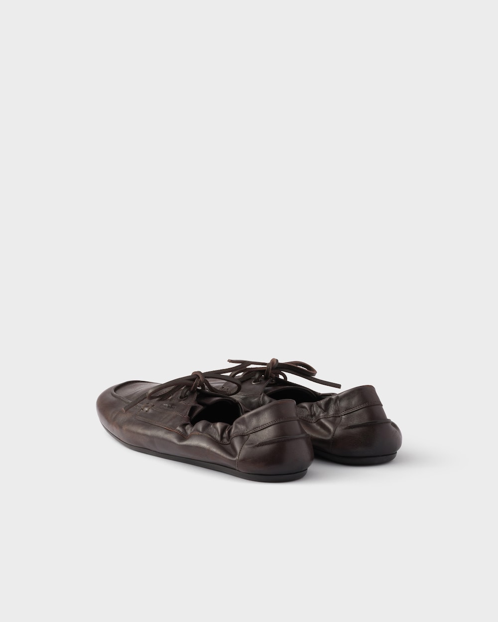メンズのフォーマルシューズを、柔らかく柔軟なデコンストラクテッドのシルエットに再解釈した一足。ヴィンテージ仕上げのレザーを使用した、薄いソールが革新的で現代的なデザインの美学を際立たせるレースアップシューズ。