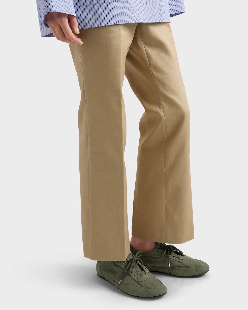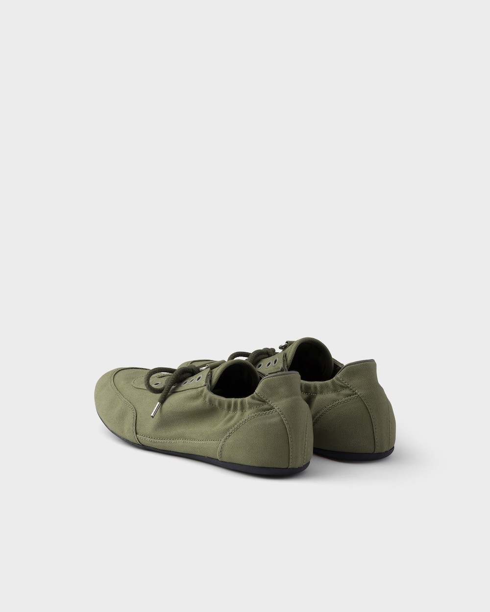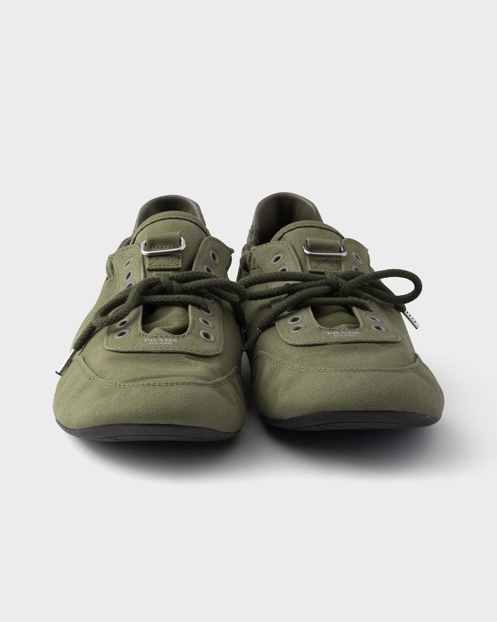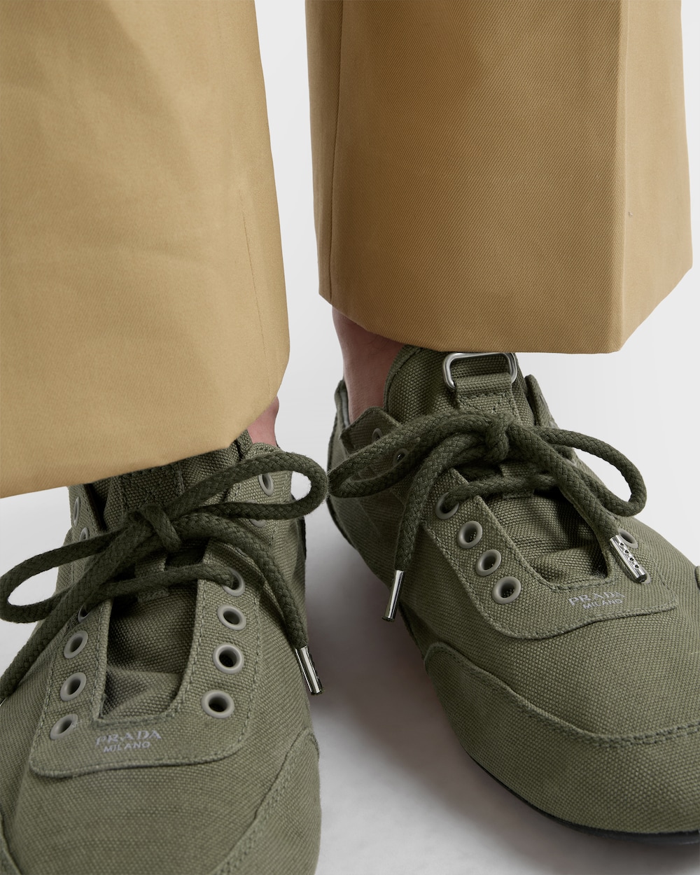 コラプススニーカーは、軽やかで柔軟、そしてデコンストラクテッドデザインで、プラダのスポーティかつ職人技の魂を体現します。キャンバス素材で再解釈されたシューズは、ヴィンテージ仕上げがカジュアルなキャラクターとリラックスした雰囲気を強調します。
