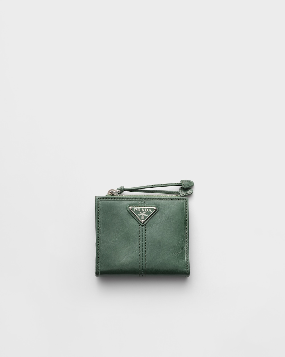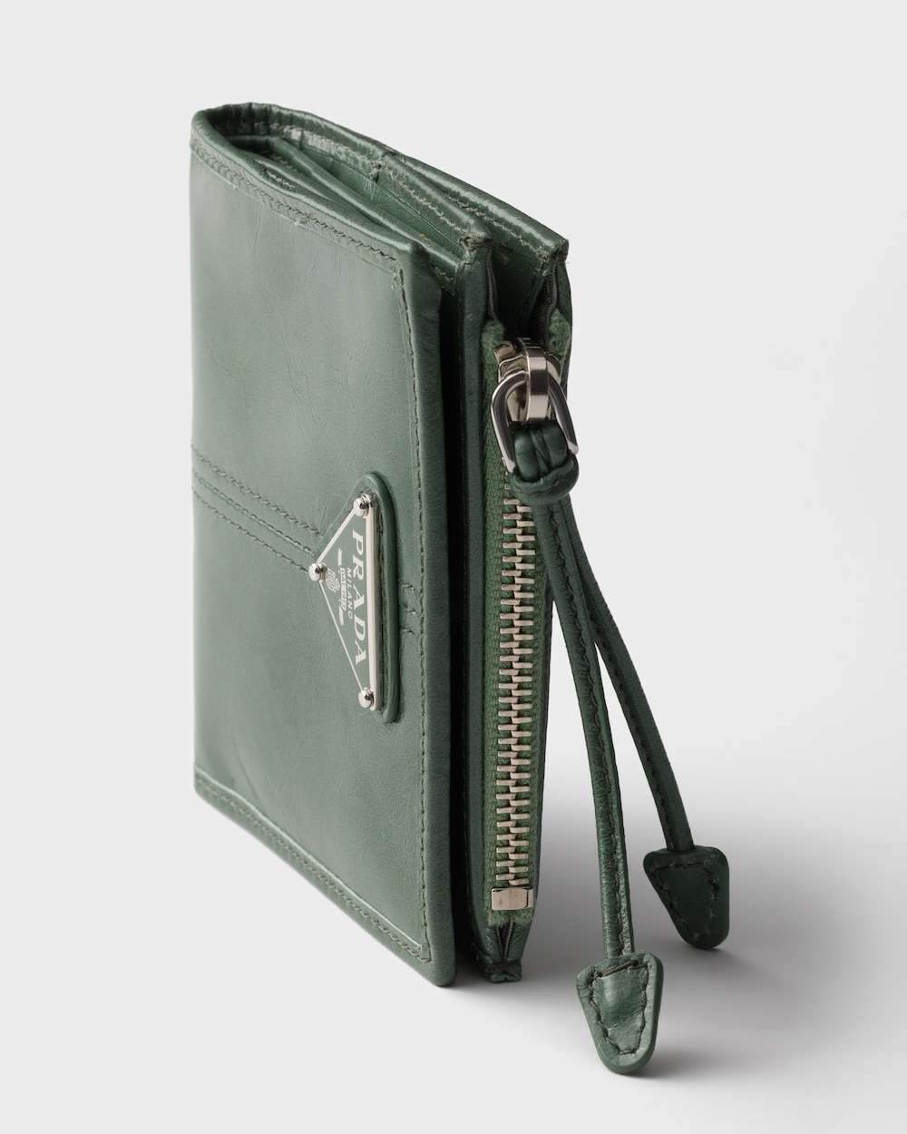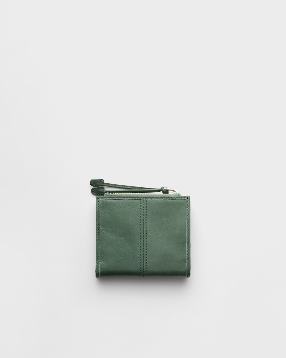 コンパクトでありながら機能的なデザインの財布。光沢感のあるレザーを使用し、モダンで上品なスタイルに仕上げています。