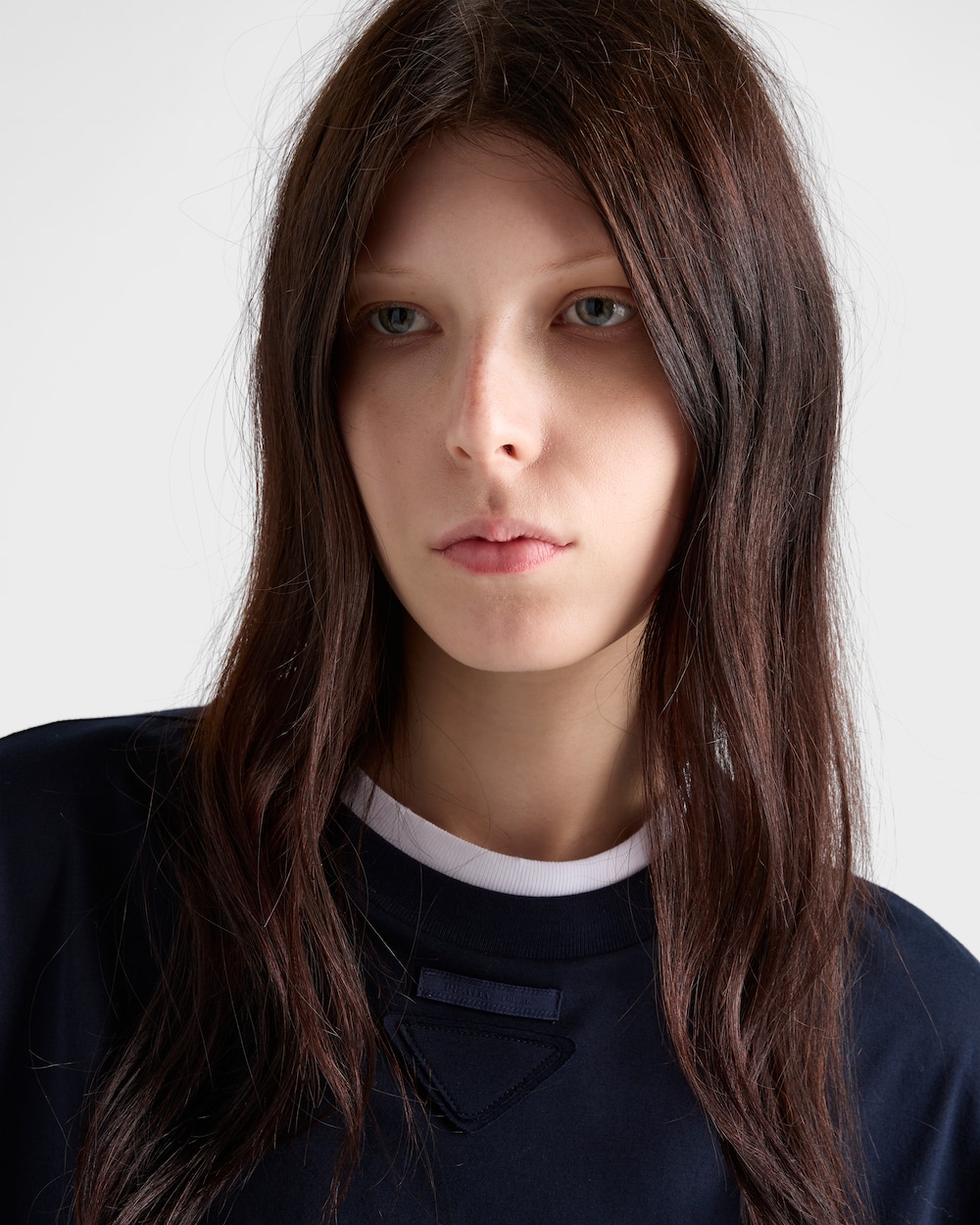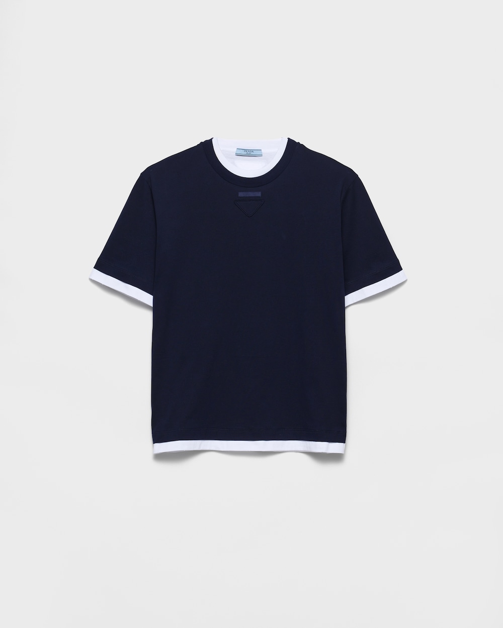 レイヤードデザインによる新たな個性はなつTシャツは、ワードローブの定番アイテムに新しいレベルに引き上げます。ボクシーシルエットのジャージーには、同色のトライアングルロゴが飾られています。