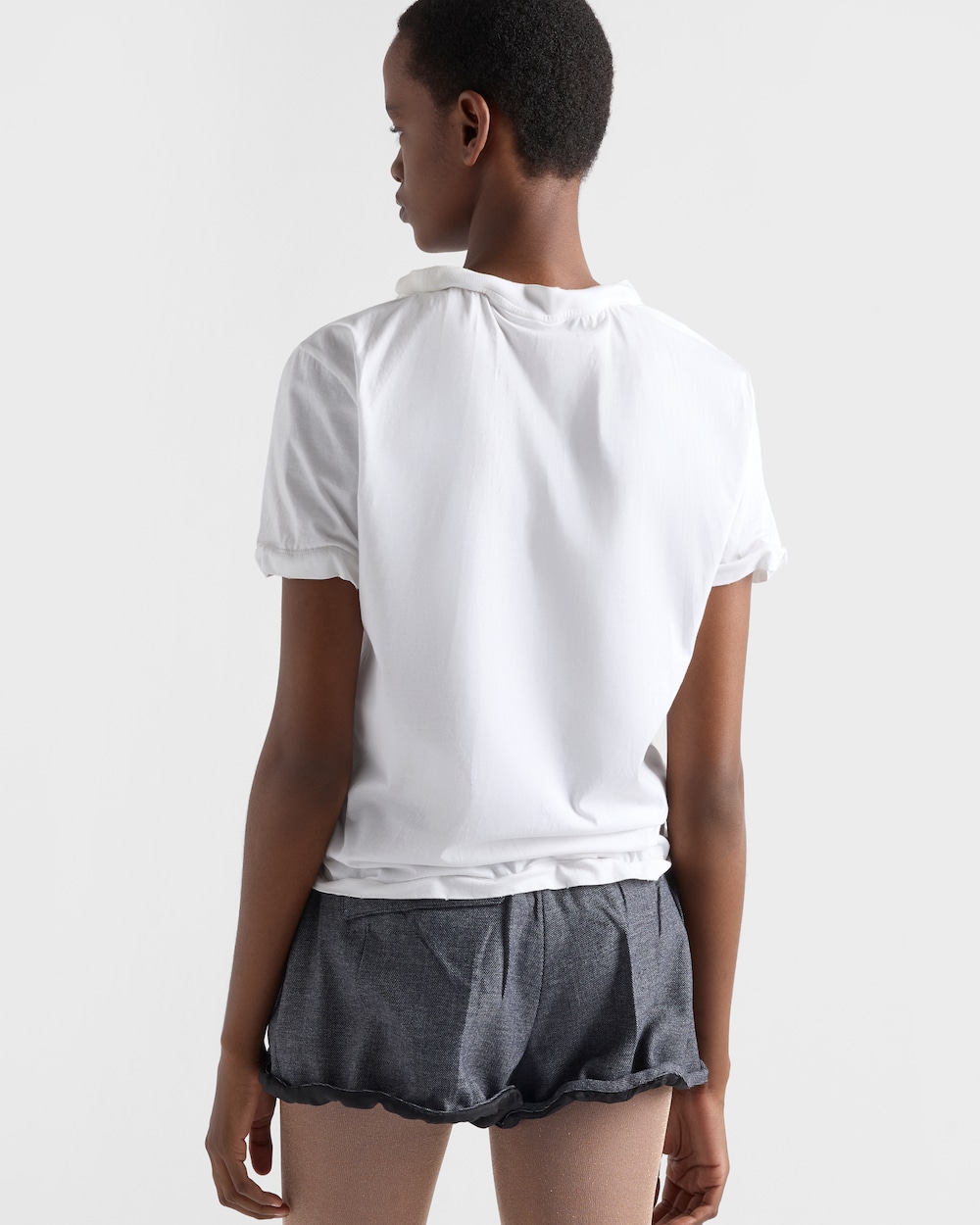 このデザインはライン(形状)を変化させ、さまざまなカスタマイズを可能にします。クラシックなTシャツは再解釈され、ネックライン、袖、裾がさまざまな形に変形できるデザインに仕上げられています。