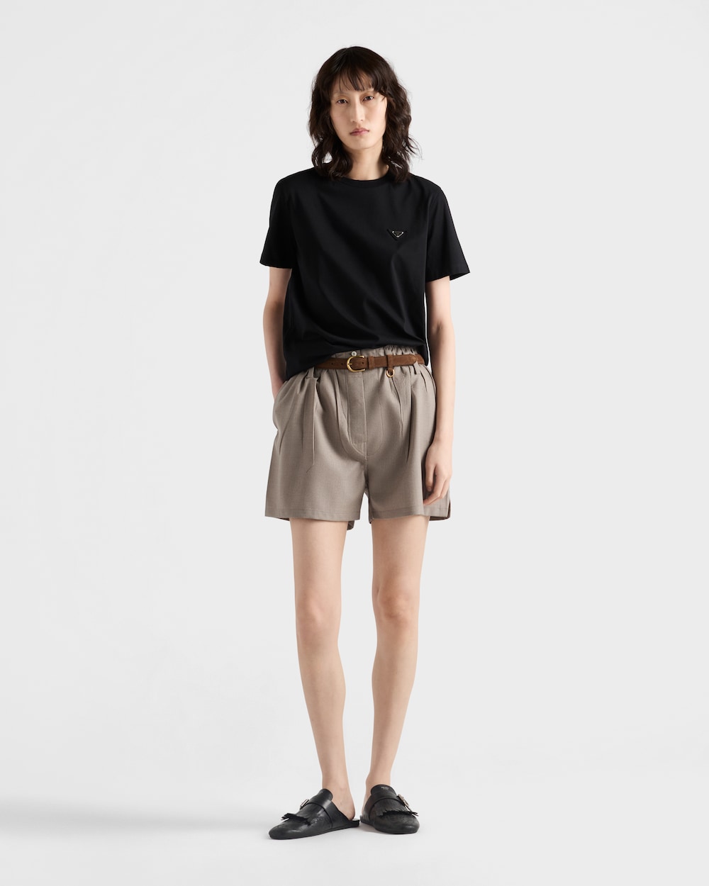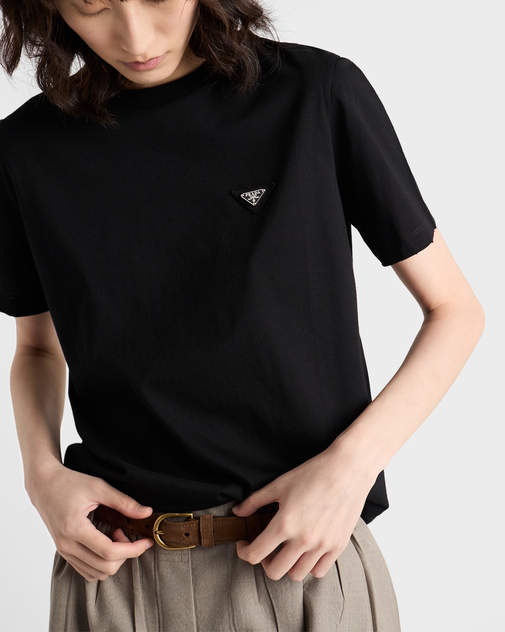 このTシャツは、軽いダメージ加工を施したジャージー素材で作られています。リラックスフィットスタイルにエナメルメタルトライアングルロゴが飾られています。