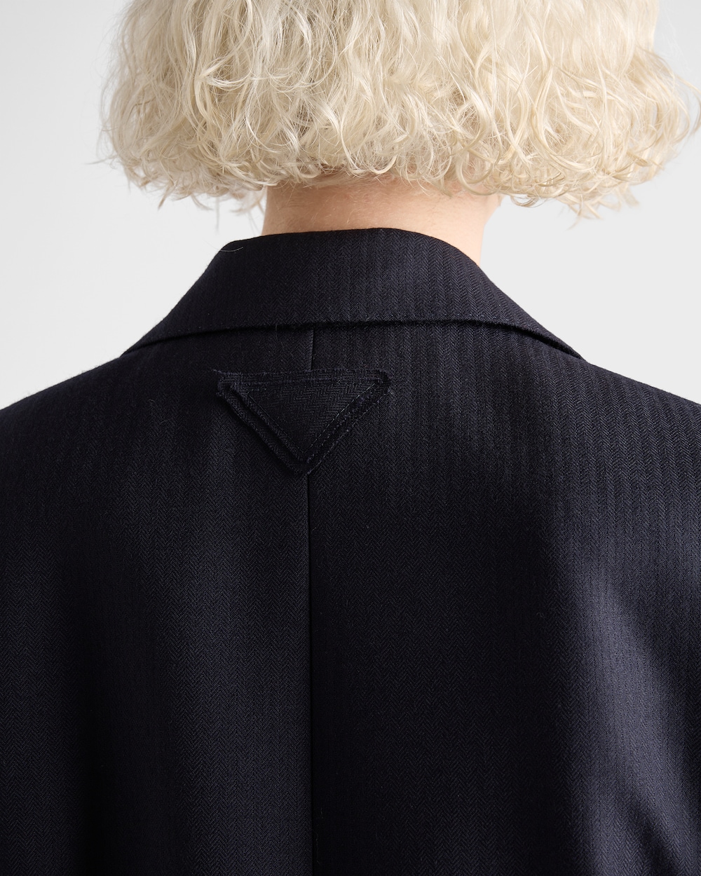This single-breasted chevron jacket is a piece that pursues a balance of structural rigor and rich texture. The notch lapel and straight silhouette, along with the fabric logo, highlight a subtle yet sophisticated impression.