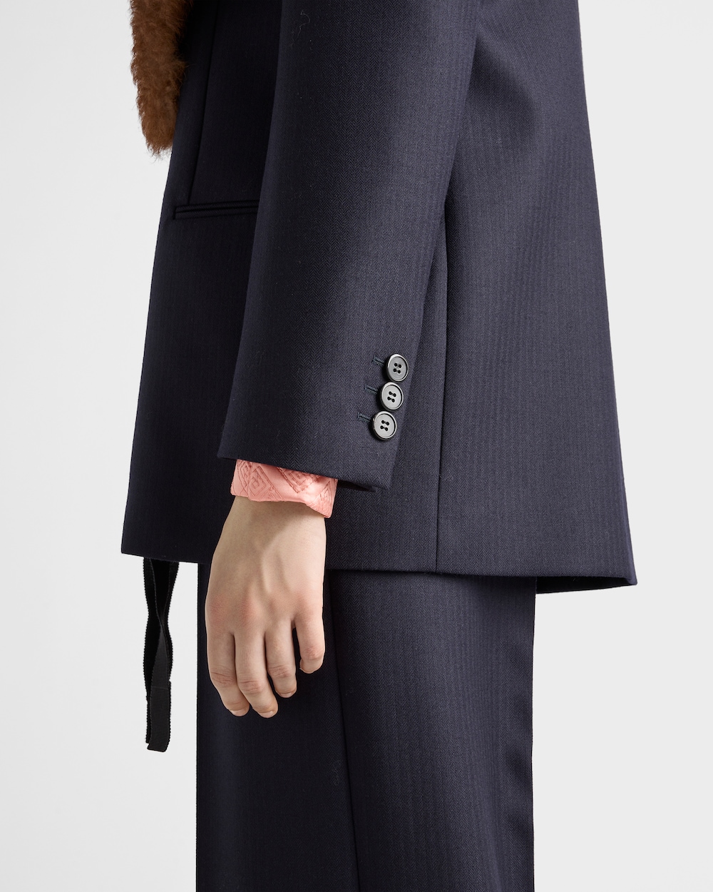 - Three-button straight sleeves