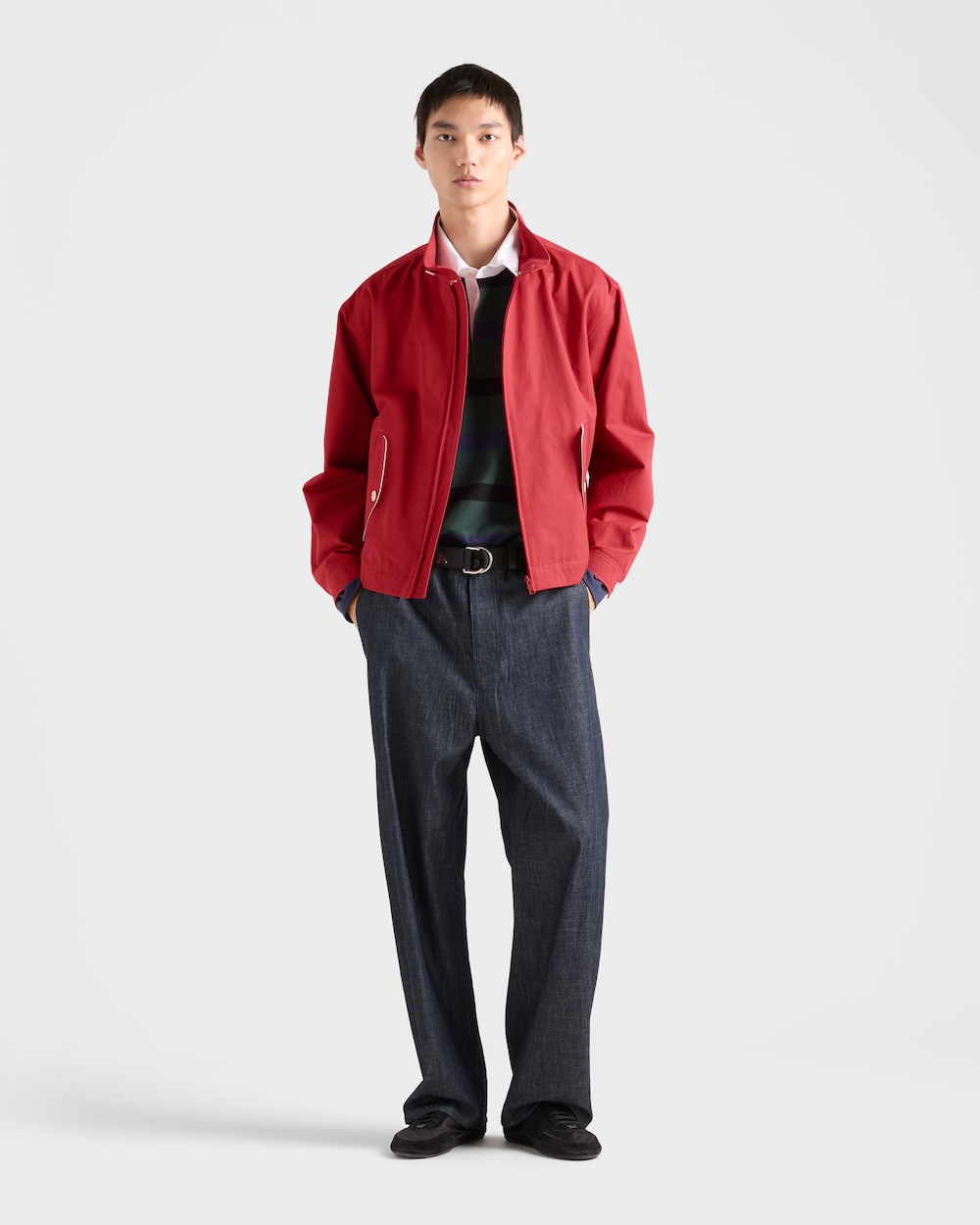 このカジュアルなコットンジャケットは、柔らかく軽やかなシルエットが特徴です。洗練されたディテールが、トライアングルロゴで飾られた現代的でミニマルな衣服を完成させます。