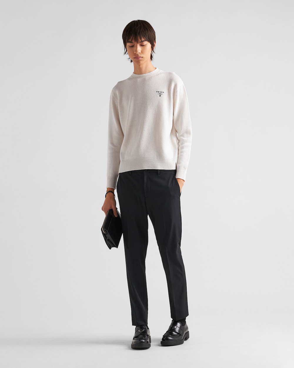 Tailored style straight silhouette stretch pants made of technical fabric, reinterpreting classic charm in a modern way. This unique combination expresses the duality present in Prada's collection.