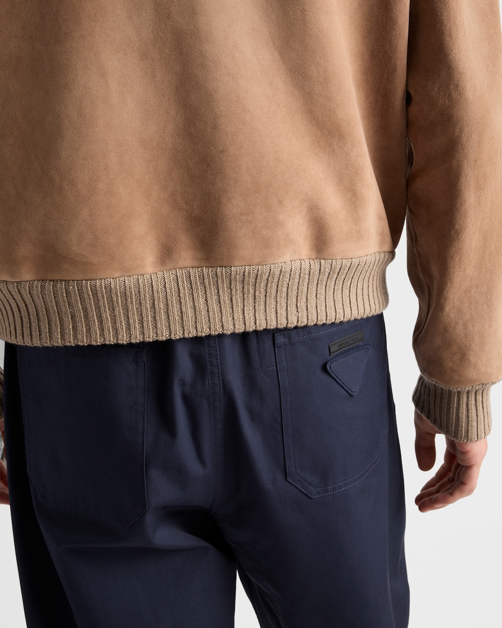 These cotton pants feature a sophisticated casual style with sporty details. The lightweight silhouette is characterized by an elastic waistband and is adorned with a monochromatic triangle logo.