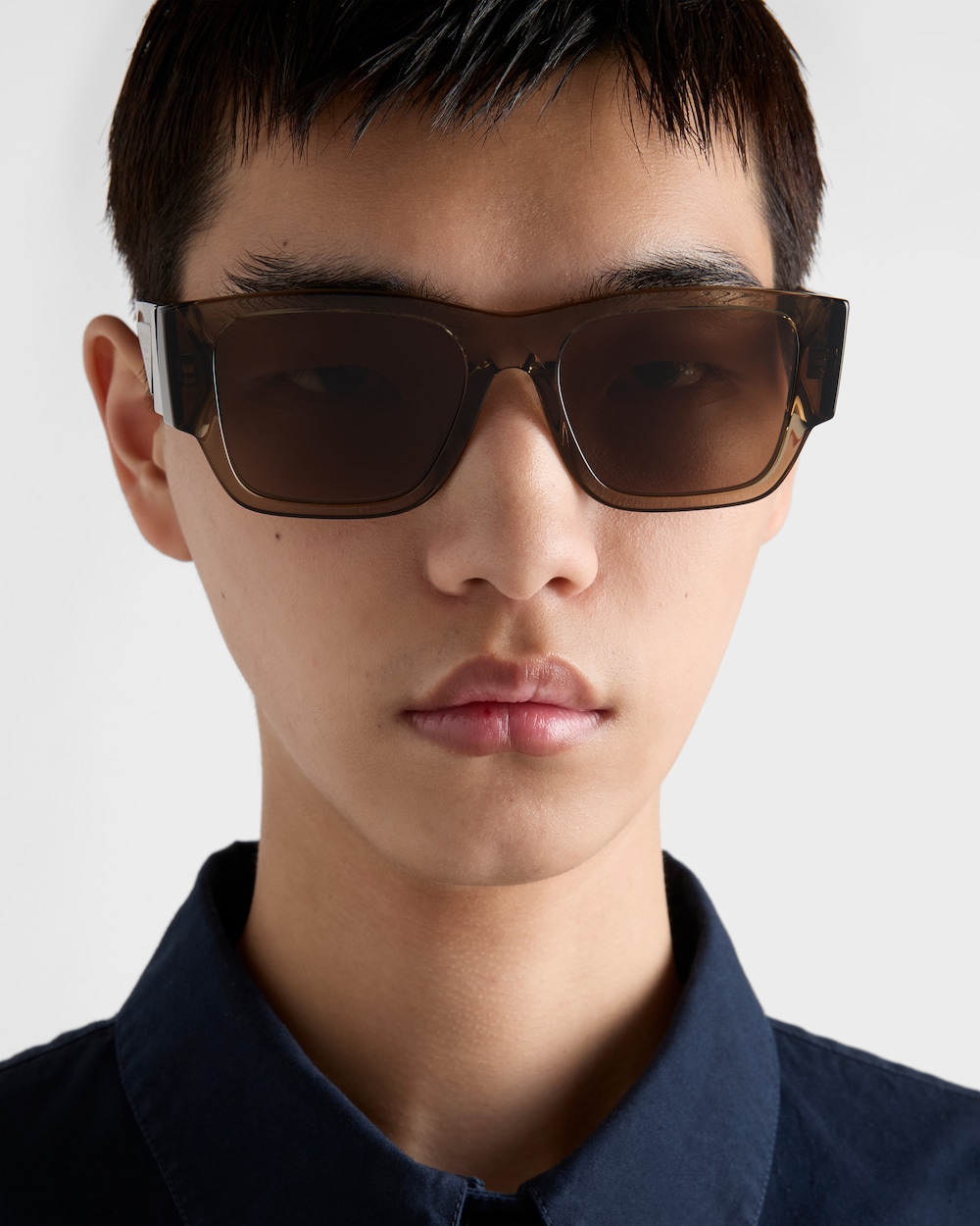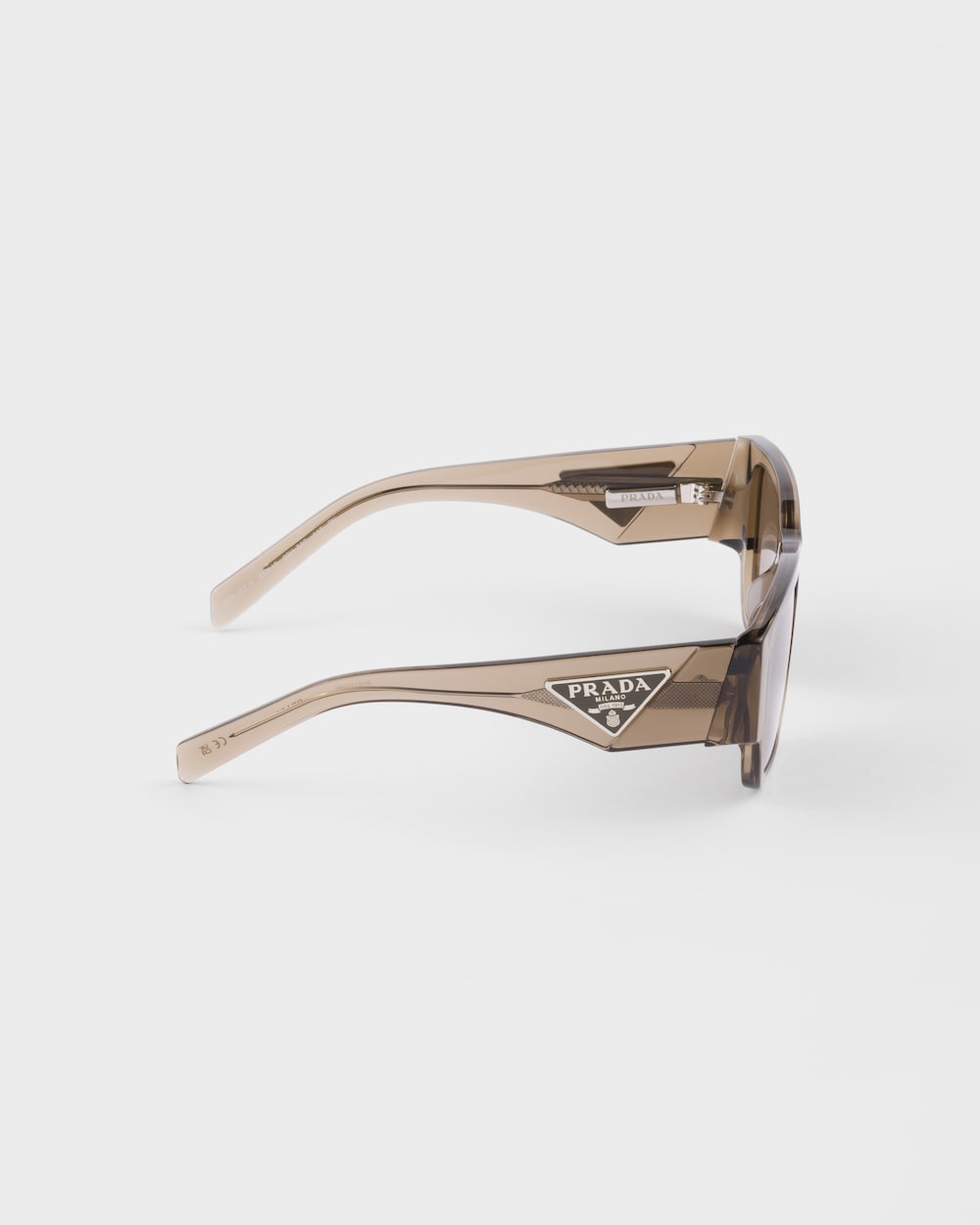 Bold geometric design beautifully crafted in acetate sunglasses. The strong square shape is further accentuated by the thick rims. The oversized two-tone temples feature an exclusive metal plate adorned with Prada's iconic triangle logo.