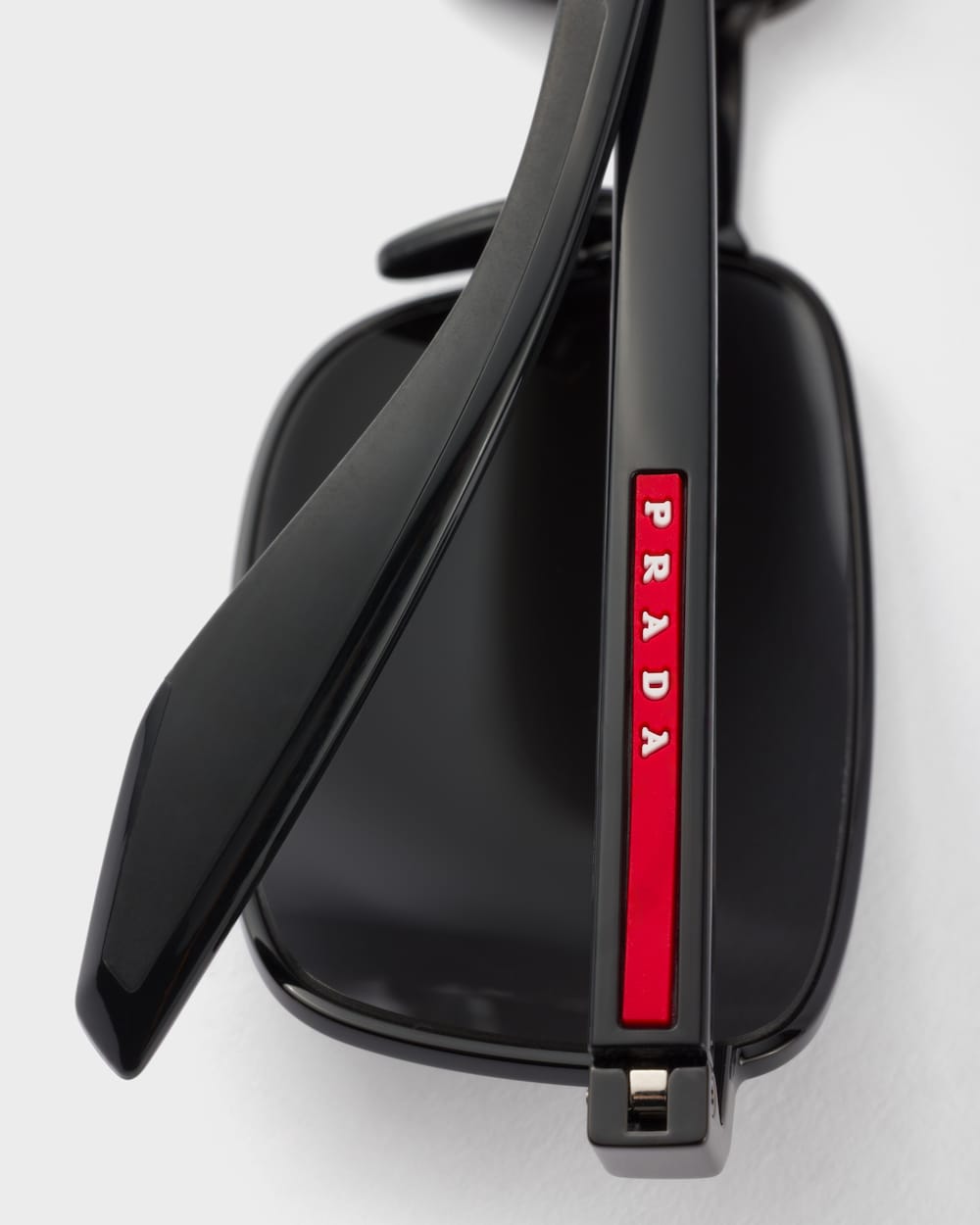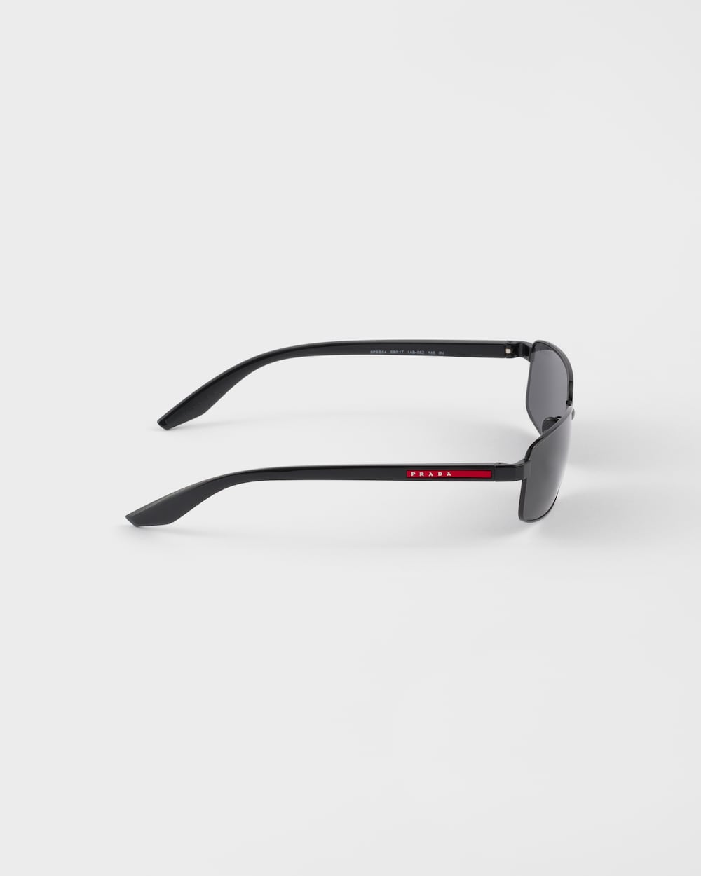 Casual metal sunglasses with a relaxed vibe. The rectangular front features rounded lines, and the ultra-lightweight, slim temples are adorned with the Prada Linea Rossa logo.