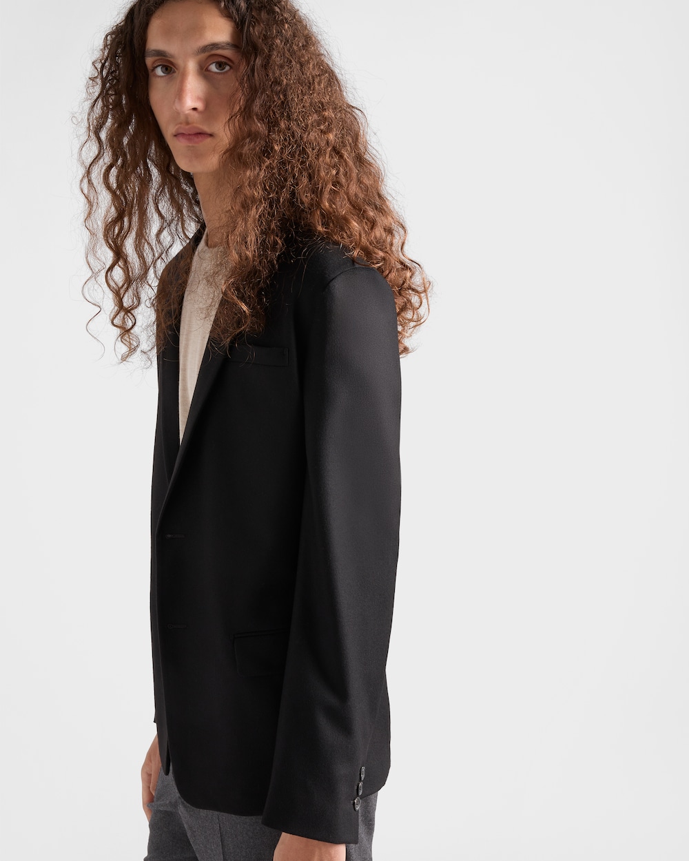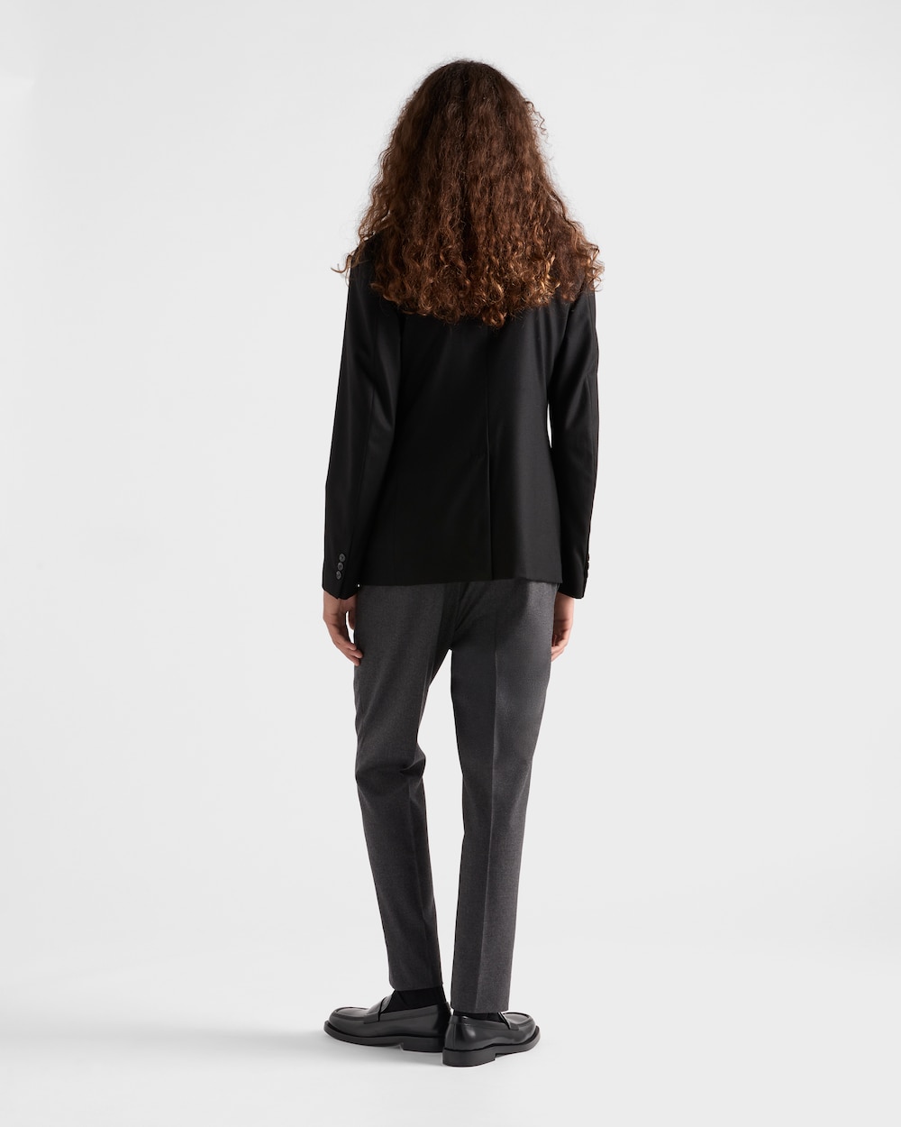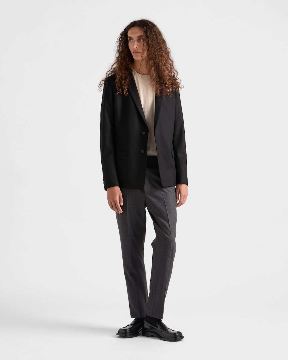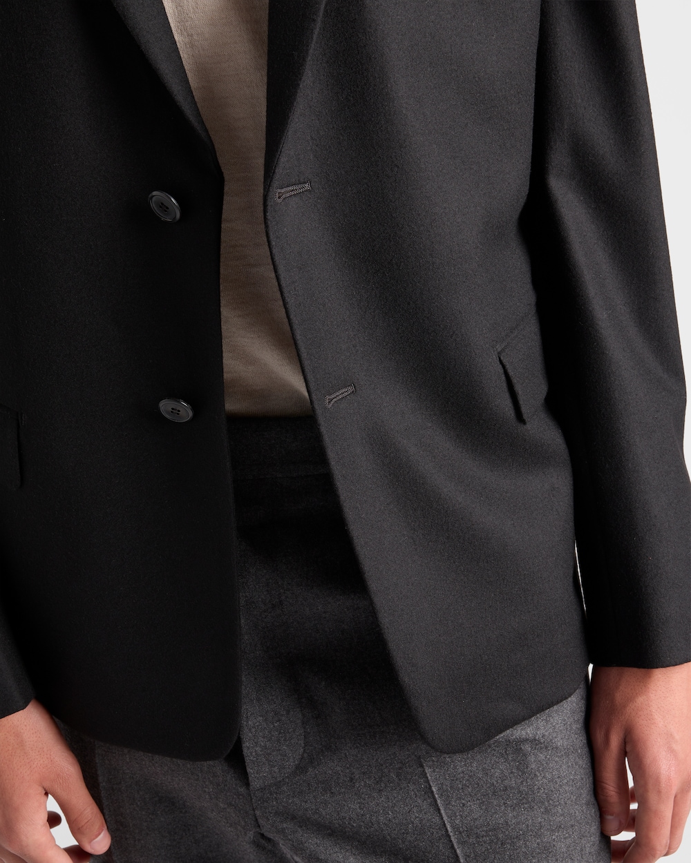 This tailored jacket is reconstructed from a wool blend material featuring a minimal design and clean lines. The slim fit and simple details highlight an elegant and modern style.